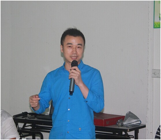 (圖為杭州桑田貿易有限公司總經理李衛(wèi)國正在做自我介紹,對本次的森榮學習表示期待與感謝。)