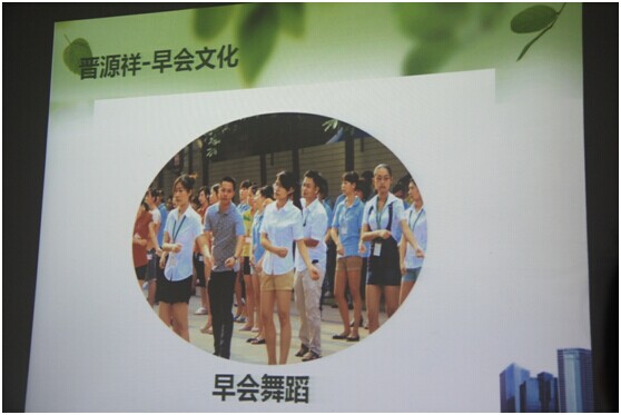(晉源祥獨(dú)特的企業(yè)早會(huì)文化吸引了共創(chuàng)會(huì)會(huì)員們的關(guān)注,早會(huì)上的舞蹈能夠激起員工一天的活力,早會(huì)祈禱使得員工抱著感恩、前程的心投入到工作中去。)