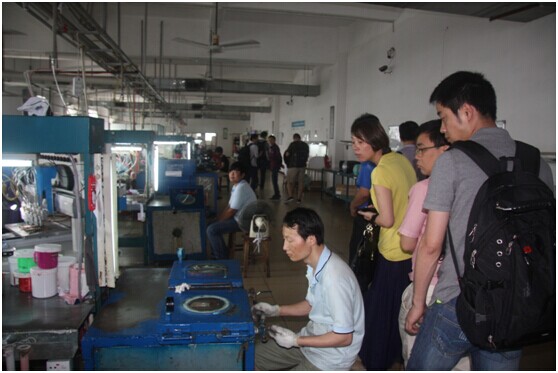 (圖為共創(chuàng)會(huì)一行參觀工廠,了解產(chǎn)品的制作流程與工藝。流水化的生產(chǎn)線,員工認(rèn)真的工作態(tài)度都體現(xiàn)了晉源祥的專業(yè)性)