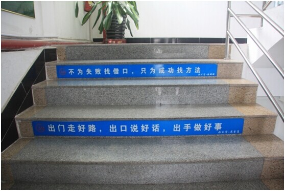 (獨(dú)特的勵(lì)志階梯,每條勵(lì)志語都出自員工,以同輩的力量來鼓勵(lì)員工積極向上)