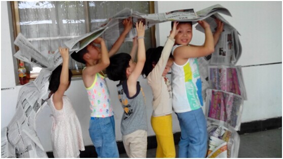 (上圖為孩子們?cè)谟螒蛑泄餐献?,寓教于?lè),在游戲中學(xué)習(xí)增強(qiáng)團(tuán)隊(duì)合作意識(shí)。)