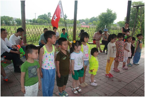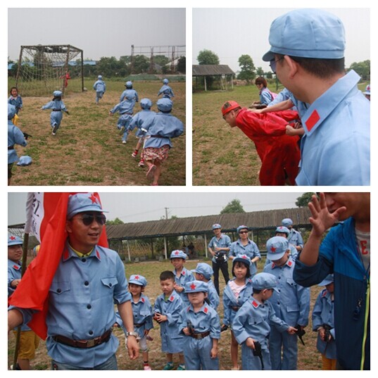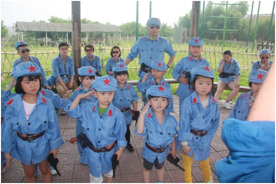 (上圖為總裁們進(jìn)行角色扮演,配合孩子們的“紅軍剿匪”行動(dòng),盡管是游戲,孩子們依然認(rèn)真對(duì)待。孩子們天真的笑臉、爽朗的笑聲是緩解父母繁重工作壓力的良丹妙藥。)