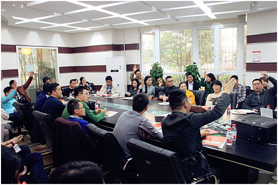 (互秀獨(dú)特而高效的企業(yè)經(jīng)營文化理念,令共創(chuàng)會成員震撼,紛紛提問展開討論。)