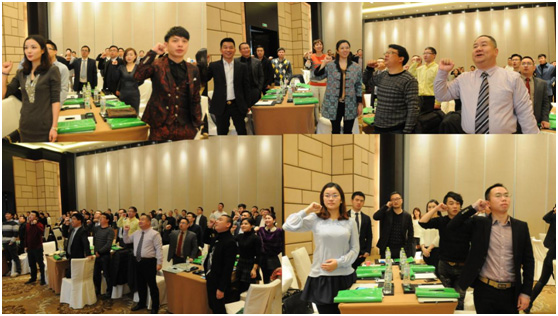 接下來是本次盛典最莊嚴(yán)的一刻,共軍們?nèi)w起立,握拳右舉、用心宣誓著我們共創(chuàng)會自己的宣言:……積極向上、勤奮好學(xué),我們樂于分享,渴望成長……