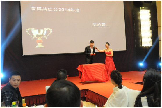 上午9點(diǎn)半,盛典拉開序幕,共創(chuàng)會秘書長郝媛圓擔(dān)任本期的主持人,以150(共創(chuàng)會截止目前會員人數(shù))、88(共創(chuàng)會14年活動次數(shù))、2(共創(chuàng)項(xiàng)目門店數(shù)目)三個共創(chuàng)會14年具有代表的核心數(shù)字, 很好的對共創(chuàng)會的2014做了簡單全面的總結(jié)回顧,同時對盛典流程安排作了清晰講解與介紹。