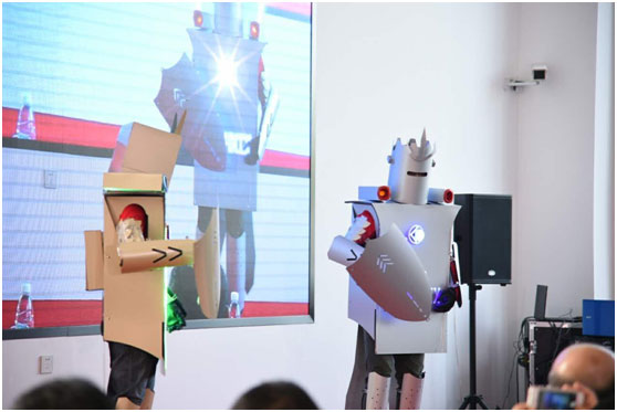(以芬尼克茲自主研發(fā)制造的智能機器人設(shè)置開場,高端個性的開場讓人眼前一亮。)