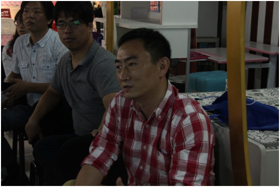 (上圖是義烏市雷群貿易有限公司總經(jīng)理趙群生在認真聽取后,對酷漫居的轉型史提問)