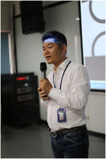 (圖為沐童總經(jīng)理張海波分享沐童的發(fā)展史和自身企業(yè)經(jīng)營模式)