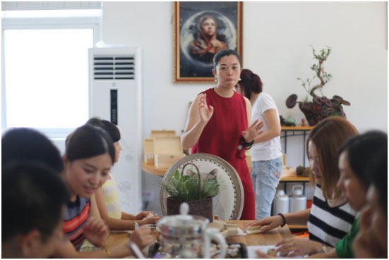 (上圖是王總在對匯合部落的產品、產品生產工藝制作流程進行詳細的講解)