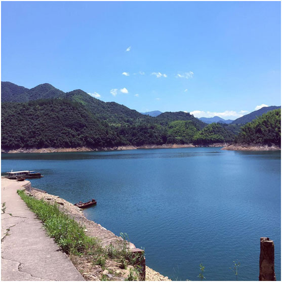抵達匯合部落水岸,清澈見底的水庫,山水合一的壯觀景色令人心曠神怡。不愧是娃哈哈高級水源地,此處的水,至清,至美,從一勺,至千里,利人利物,時行時止。