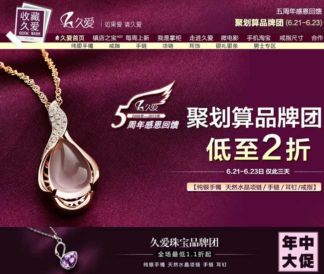 客戶公司簡(jiǎn)介:久愛的總部位于深圳市羅湖區(qū)水貝國(guó)際珠寶交易中心,專業(yè)生產(chǎn),品質(zhì)優(yōu)良。我們經(jīng)營(yíng)高檔銀飾珠寶,品質(zhì)優(yōu)良的水晶飾品。擁有完善的生產(chǎn)體系,從選材到產(chǎn)品,每個(gè)環(huán)節(jié)都有嚴(yán)格的控制和把關(guān)。在淘寶上一直被指定為讓顧客放心的品牌賣家,為您提供性價(jià)比最高的產(chǎn)品,讓您輕松地引領(lǐng)時(shí)尚,感受久愛珠寶的無窮魅力。我們用愛在服務(wù),牽動(dòng)著青春的誓言,記憶著最難忘的畫面,觸摸著最真的感動(dòng)。久愛用小小的飾品記載著動(dòng)人的回憶。