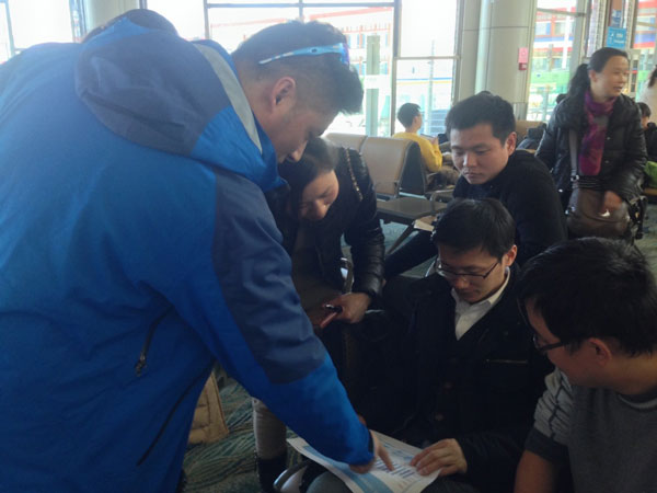 (上圖為在機(jī)場候機(jī)時會員還不忘與方永飛老師一起探討企業(yè)管理落地問題,正在討論的是義烏特諾百貨有限公司的13年總結(jié)及14年年度計(jì)劃的制定)
