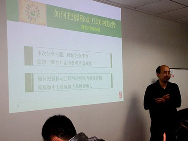 應(yīng)大家的需求,李總還重點講了微信營銷及公眾平臺的應(yīng)用,通過詳細具體的對比讓會員更清晰地看到效果。李總指出,現(xiàn)在做企業(yè),需要慢慢滲透,讓業(yè)務(wù)員向服務(wù)員轉(zhuǎn)型,建立更可依賴的關(guān)系互動網(wǎng)。那對于企業(yè)而言,微信營銷中又應(yīng)該在其中發(fā)揮什么樣的關(guān)鍵作用?那就是客服!花費精力去建立一個良好的、人性化的人工微信客服平臺,絕對是物有所值,這也是企業(yè)在微信營銷中所能發(fā)揮的最大優(yōu)勢:建立良好的互動關(guān)系,而不僅僅只是設(shè)定一個簡單程序化的自動回復!微信營銷,若是撇開自我分裂式的營銷目標和互動的優(yōu)質(zhì)客服建立,那就談不上有別的什么優(yōu)勢了,所以,要想取得微信營銷的成功,就必須牢牢抓住這兩個優(yōu)勢關(guān)鍵點!