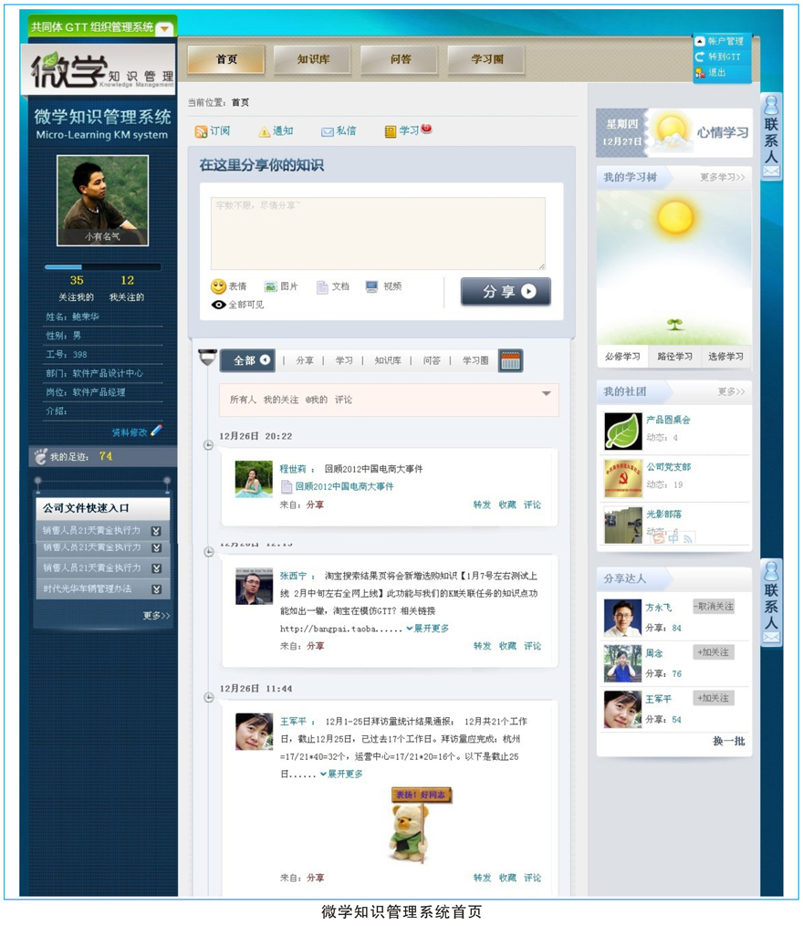 GTT企業(yè)知識(shí)庫(kù)體系,主要用于對(duì)企業(yè)顯性知識(shí)管理,旨在運(yùn)用知識(shí)管理的最新理念,整合先進(jìn)的信息化、數(shù)字化、web2.0網(wǎng)絡(luò)化技術(shù),支持企業(yè)構(gòu)建一個(gè)全方位的知識(shí)管理、信息交流平臺(tái)。積累和保存企業(yè)信息和知識(shí)資產(chǎn),加快內(nèi)部信息和知識(shí)的流通,實(shí)現(xiàn)組織內(nèi)部知識(shí)的共享,全面提高企業(yè)整體競(jìng)爭(zhēng)力。