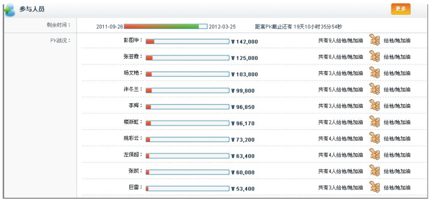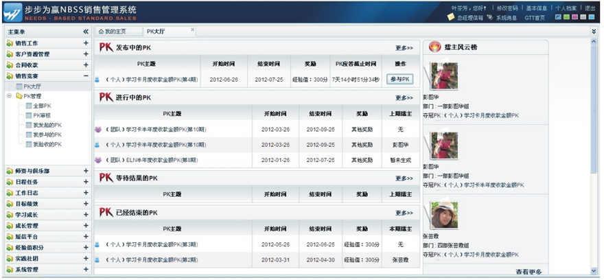 銷售任務(wù)PK系統(tǒng)目的在于激發(fā)銷售人員的競(jìng)賽熱情;其主要功能在于通過(guò)銷售任務(wù)PK和擂臺(tái)比拼,營(yíng)造你追我趕向前沖,為榮譽(yù)而戰(zhàn)的銷售氛圍,打造銷售標(biāo)桿,杠桿撬動(dòng)全員銷售激情和活力。