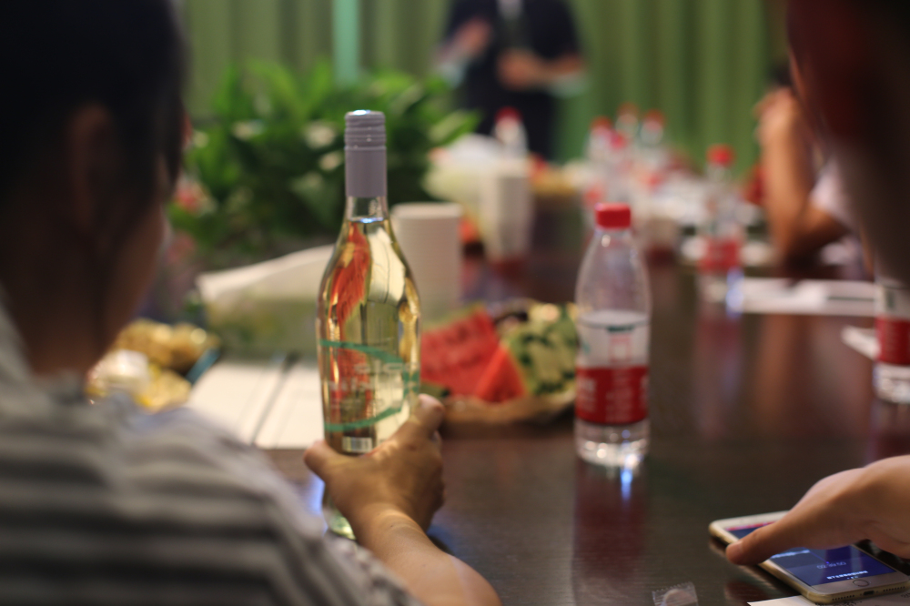 會議過程中,鄭總把他的產(chǎn)品拿到現(xiàn)場與共軍們分享,現(xiàn)場儼然成了一個“品酒會”。