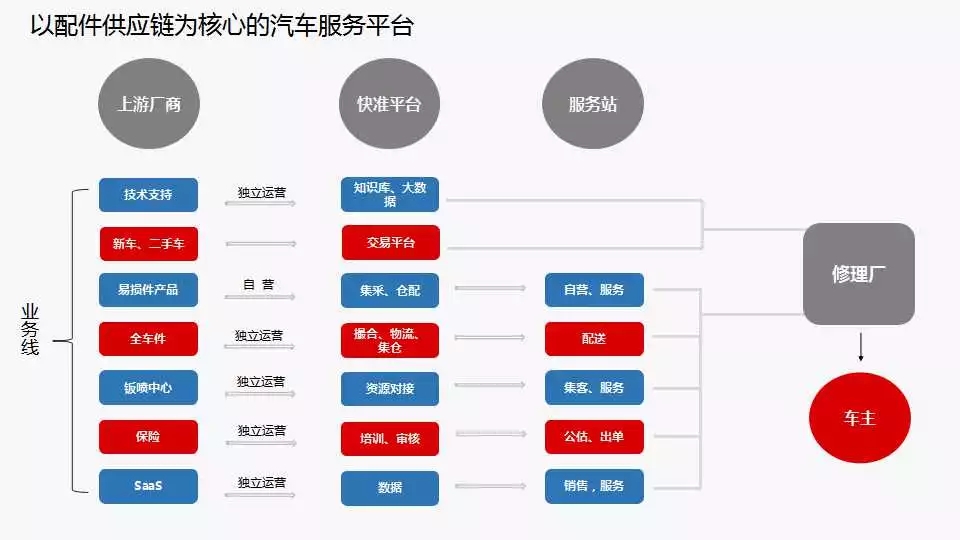 有了這400多個店伸入到第一線市場,浙江省基本全面覆蓋,有了這個網(wǎng)以后,開始進(jìn)行一些調(diào)整,增加了修理廠的以配件供應(yīng)鏈為核心的汽車服務(wù)平臺,目前4個縣已經(jīng)能做到200萬,不過蔣總說到今天,線上交易金額還沒有,還不能算真正的電商。